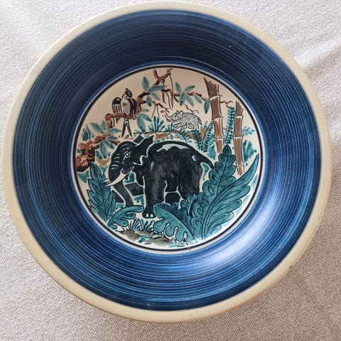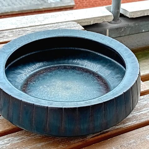 Keramisk fad med et meget markant skulpturelt udtryk med elementer af smeltet asfalt og glas.