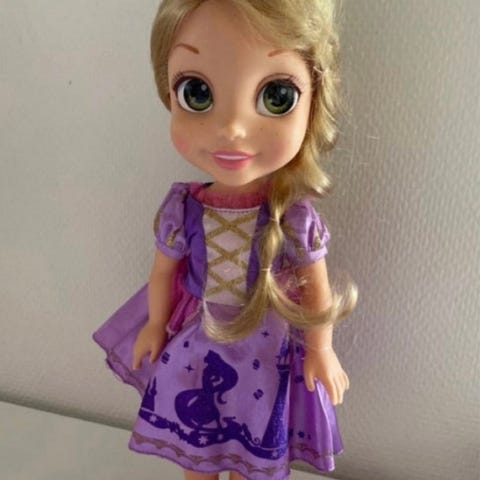 Disney dukke Merida fra filmen Modig. Dukken har langt krøllet rødt hår og er iført en lang blå kjole med mønster og bælte i taljen. Leveres i original emballage med illustrationer af figuren på forsiden og bagsiden. Velegnet som legetøj til børn eller som samlerfigur for fans af Disney-prinsesser.