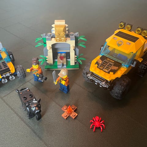 LEGO City legesæt med terrænbil og klippelandskab. Sættet består af en grøn terrænbil med store dæk samt en klippe- og lavascene bygget af grå og orange klodser. Modellen kan bruges til rolleleg og opbygning af forskellige City-scenarier med bjerg- og offroad-tema.