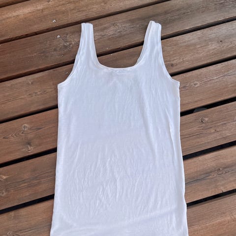 Selected Femme tanktop til kvinder i str. 40. Toppen er hvid og fremstillet i viskose. Modellen har tynde stropper og løs pasform. Velegnet som sommertop eller under en cardigan eller jakke.