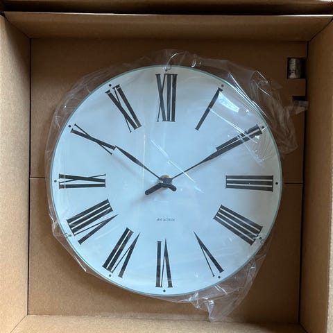 Rosendahl Arne Jacobsen vægur i hvidt design med rund urskive. Uret har minimalistiske markeringer og tynde visere med rød sekundviser. Bagsiden har batteridrevet urværk og ophæng til vægmontering. Velegnet til brug i stue, køkken, kontor eller andre rum, hvor et enkelt og funktionelt vægur ønskes.
