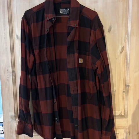 Carhartt skjorte til herre i størrelse XL. Skjorten er blå med ternet mønster og fremstillet i bomuld. Klassisk model med krave, gennemgående knaplukning foran og brystlomme. Ærmerne har manchetter med knaplukning. Velegnet til hverdagsbrug eller som lag over T-shirt.