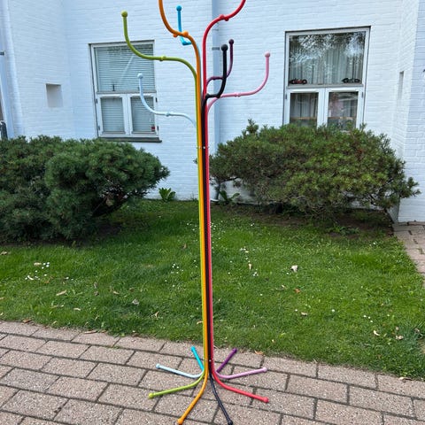 Et ikonisk og skulpturelt entrémøbel med mange knager i forskellige højder og en meget stabil fod.