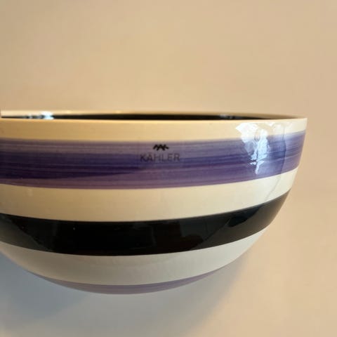 Kähler Omaggio Ø30 skål i porcelæn med sorte og hvide vandrette striber. Skålen har blank glasur indvendigt og udvendigt. Velegnet som serveringsskål til salat, frugt eller andre retter samt som dekorativ skål i køkken eller stue.