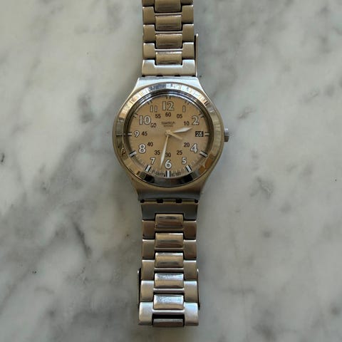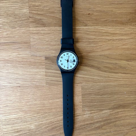 Swatch armbåndsur til unisex. Uret har rund urskive og mekanisk værk, hvor bevægelsen kan ses på bagsiden. Remmen er i læderlook med spænde lukning. Leveres i original plastæske, som beskytter uret under opbevaring og transport.