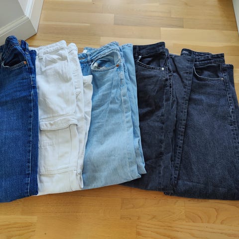 Sælger disse her Jeans, da de bare hænger og fylder op.