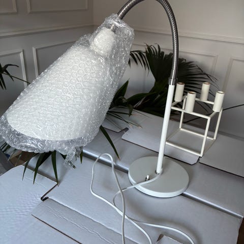 &Tradition Arne Jacobsen bordlampe i grå, lakeret metal, med messing drejbar arm