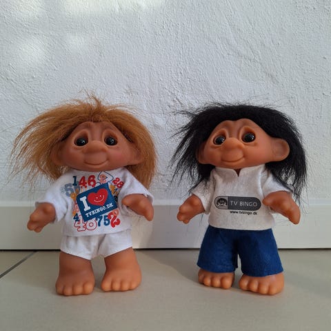 To Dam trolde med logo på brystet fra Tv Bingo.