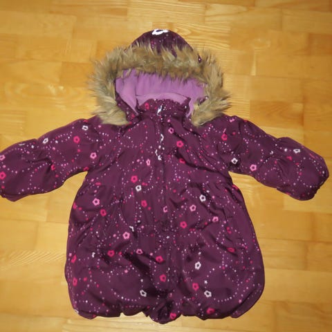 Flot og varm lilla vinterjakke til piger. Jakken har blødt lilla bamsefoer indvendigt, aftagelig hætte og et praktisk bælte i taljen.