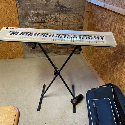 Yamaha YDP-131 digitalpiano med 88 fulde tangenter i mørkbrun træfinish. Modellen er udstyret med tre pedaler og indbygget kontrolpanel i venstre side med funktioner som lydvalg, optagelse/afspilning, metronom og master volume. Egnede anvendelser omfatter øvning i hjemmet, undervisning og akkompagnement. Pianoet er designet som møbelmodel til placering op ad væg med integreret stativ og klaplåg over tangenterne.