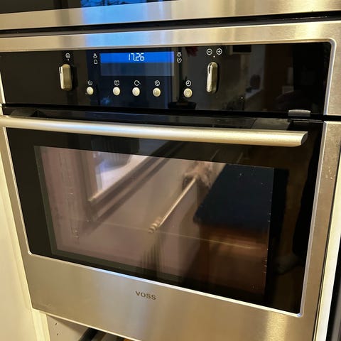 Voss indbygningsovn med varmluft i rustfrit stål. Ovnen er beregnet til indbygning i køkkenmodul og har front i rustfrit stål med sort glaslåge. Varmluftsfunktionen fordeler varmen jævnt i ovnrummet og gør det muligt at tilberede flere retter samtidig. Egnet til almindelig madlavning, bagning og stegning i private husholdninger.