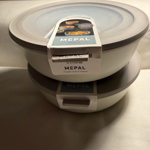Mepal skålesæt i orange plast. Sættet består af flere runde skåle i samme farvetone. Skålene kan bruges til servering af fx snacks, morgenmad, tilbehør eller desserter og kan nemt stables for opbevaring. Farven er orange/rød på alle dele, og materialet fremstår som let og robust plast, egnet til daglig brug i køkkenet.
