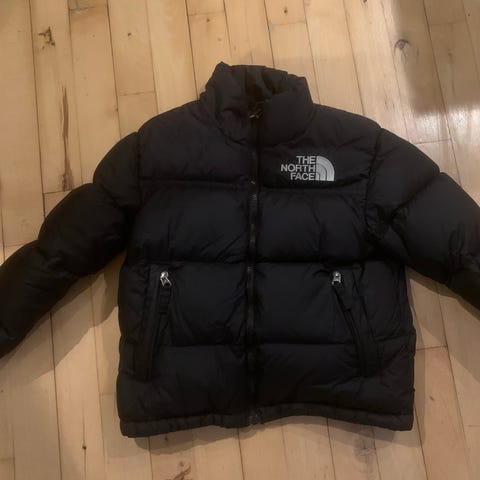 The North Face dunjakke til børn i str. 116, unisex. Jakken er sort og foret med dun, hvilket giver god isolering. Den har gennemgående lynlås foran, sidelommer og elastik ved ærmeafslutningerne. Diskret The North Face-logo på brystet og bagpå skulderen samt 550-mærkning på ærmet, som angiver fyldmængden i dunforet. Velegnet som varm yderjakke i køligt vejr til både drenge og piger.