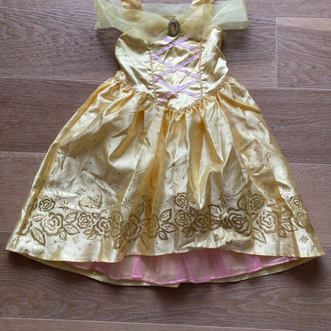 Flot, meget velholdt Frost prinsessekjole med “pels”kant i str 134/140. Fra røgfrit hjem uden husdyr.