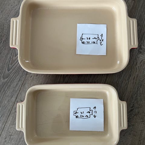Sættet består af tre rektangulære ovnfaste fade i forskellige størrelser med lyse indvendige emaljeoverflader og håndtag i hver ende. Fadene egner sig til ovnretter som lasagne, gratin og bagning.