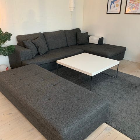 Ca. 3 år gammel. Har pletter og trænger til rens. Ingen huller, revner eller andre skræmmer. Kan evt. leveres.