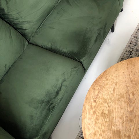 Grøn velour i god stand. Står på 5. og skal bæres ned af min. 2 personer.