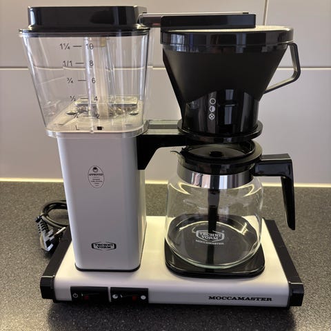 Moccamaster KBG kaffemaskine i farven polished silver. Maskinen har en kapacitet på 1,25 liter og er beregnet til 220-230V / 50-60Hz med en effekt på 1350-1520W. Udstyret med glaskande, aftagelig vandtank med måleskala og filtertragt i plast. Velegnet til brygning af filterkaffe i hjemmet eller på kontor.