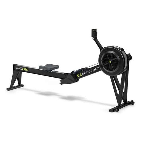 Concept2 PM5 romaskine. Romaskinen har luftmodstand med svinghjul foran og justerbar modstand via spjæld på luftindtaget. Sædet er monteret på en skinne, så det kan glide frem og tilbage under roning. Der er fodplader med justerbare stropper til fastgørelse af fødderne samt håndtag forbundet med kæde til svinghjulet. Maskinen er egnet til indendørs konditions- og styrketræning og kan anvendes af både begyndere og øvede brugere. Velegnet til hjemmetræning eller træningsrum, hvor der ønskes helkropstræning med fokus på kondition og muskeludholdenhed.