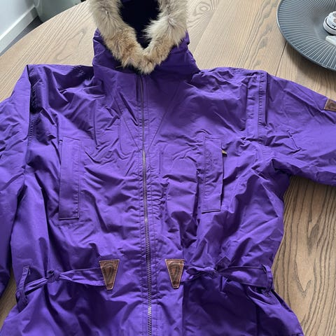 Fed vandre- / skijakke i blå farver med aftagelig vest. Mange detaljer bl.a inderlommer og flere yderlommer desuden special lomme til vandflaske. Vindfang i ærmer.