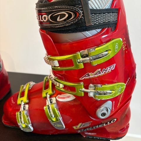 Dalbello Krypton 110 skistøvler i blå med grønne detaljer. Modellen har tre justerbare spænder og powerstrap øverst for god støtte om underbenet. Sålens længde er angivet til 327 mm. Svarer til str 43.