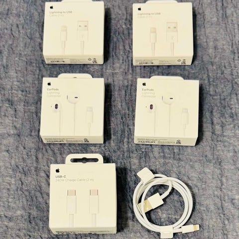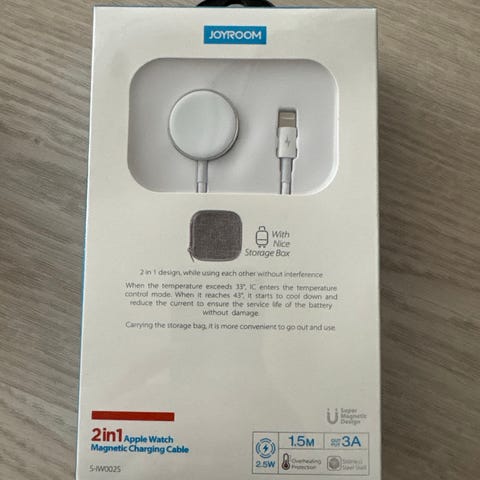 Apple oplader original. Standard vægoplader med tilhørende kabel (2meter), velegnet til opladning af kompatible Apple-enheder via stikkontakt.