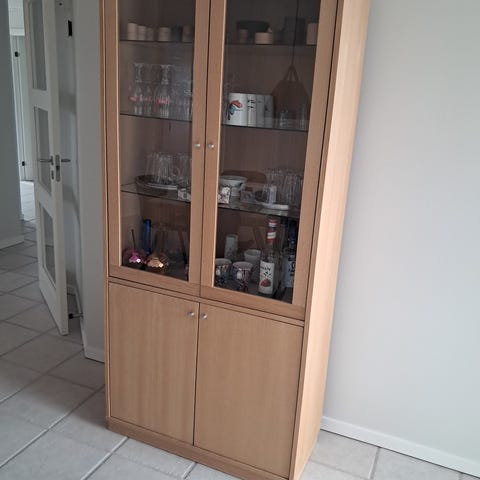 fint vitrinskab i fyrretræ 180cm H