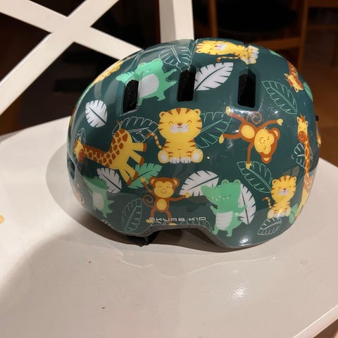 Abus cykelhjelm til børn i blå med haj- og undervandsmotiv. Hjelmen har flere ventilationshuller og justeringssystem i nakken for bedre pasform. Velegnet som beskyttelseshjelm til cykling og lignende aktiviteter for børn.