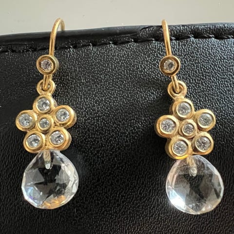 Vigtigt at bemærke: Den ene ørering har fået et lille “bug”/en ujævnhed i metallet. Det er svært at fange på billeder, men når lyset rammer, kan man se, at lyset falder anderledes på overfladen. Det skal naturligvis oplyses, så du ved præcis, hvad du køber.