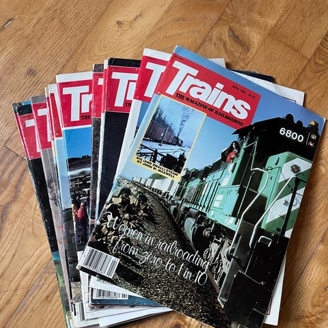 Schienenverkehr aktuell tidsskrifter om tog og jernbane. Magasinerne indeholder artikler, fotos og information om jernbanedrift, tog og relaterede emner. Egner sig til samlere eller interesserede i jernbanehistorie og togtrafik.
