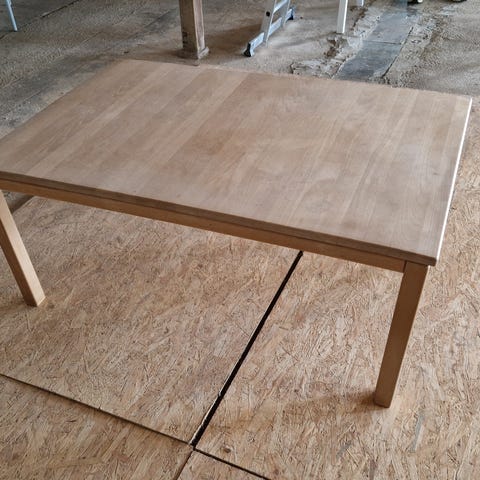 Sofabord i egetræ med en klap. Længde med klap opslået 140 cm