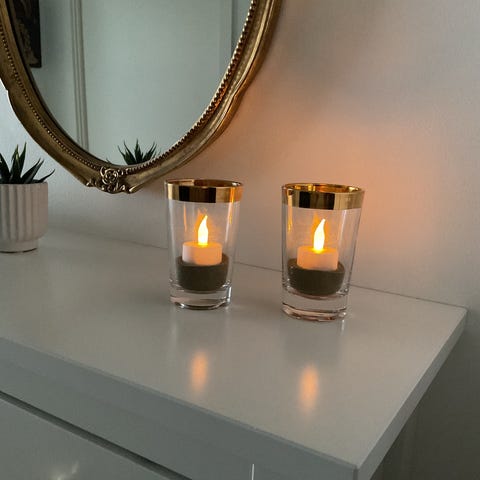 2 elegante lysestager med gyldent kant, Ilum
