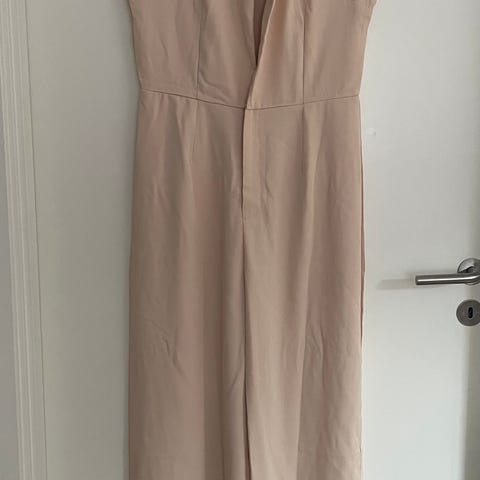 Helt ny mørkeblå buksedragt med lille elastik i taljen, bindebånd og knap i nakken. Dragten er en str. L, men synes den svarer mere til en M. Helt ny og ubrugt.