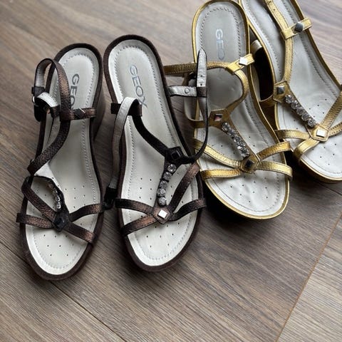 Geox sandaler i str. 41. Åbne sandaler i beige med justerbare velcrostropper over forfod, vrist og hæl.