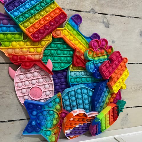 Pakke med poppets, fidget og andet. Velholdt.