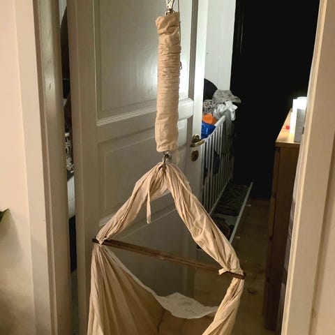 Grøn moonboon med gråt stativ og motor. Fra røgfri hjem uden dyr. Ingen pletter. Muligt at tilkøbe leander classic vugge med madras for 300 kr.