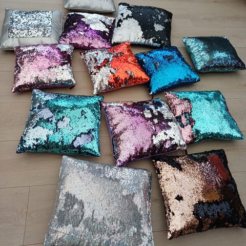 7 stk pyntepuder med korsmønster. Sættet består af to puder med kontrastfarver: én i lys bundfarve med mørke kors og én i mørk bundfarve med lyse kors. Begge puder har kantbånd i en lys gul nuance. Velegnet til brug i sofa, lænestol eller på seng som dekorative puder i stuen eller soveværelset.