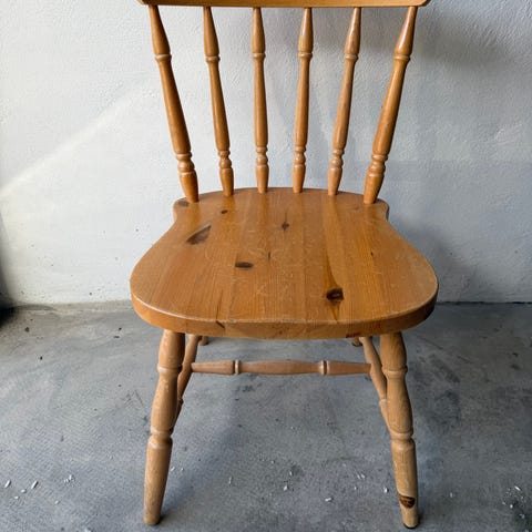 Krostole med patina. Robuste og med god siddekomfort. Trænger til en efterspænding og eventuelt en klat maling.