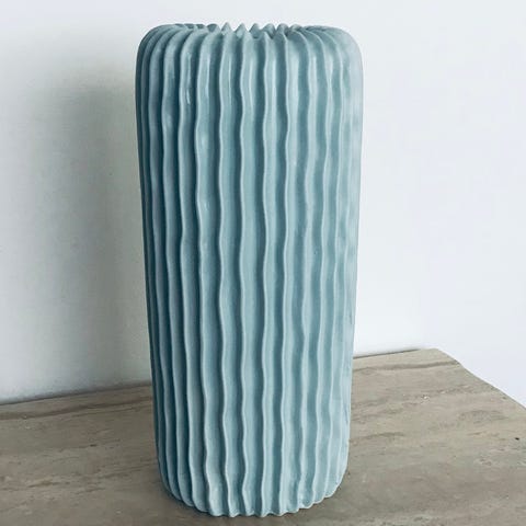 Denne smukke vase i grå glas er både elegant og tidløs, og den tilføjer et sofistikeret touch til enhver indretning. Den enkle, men moderne form gør den perfekt til at fremvise blomster eller som en dekorativ genstand alene.