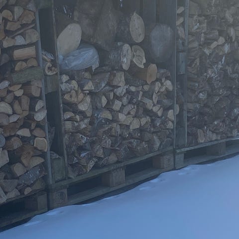 O,9 RM håndstablet. Her er der lidt luft og meget brænde.