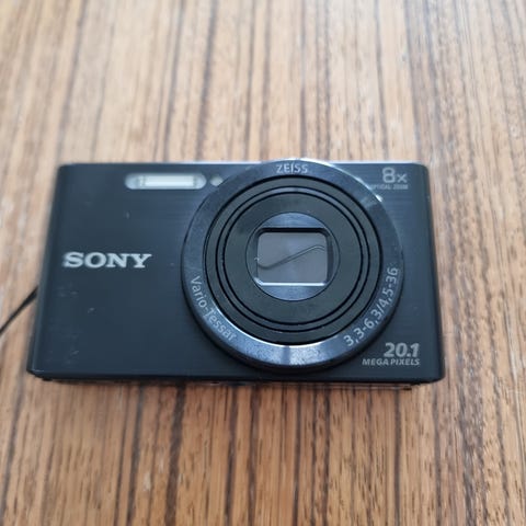 Komplet med lader, batteri, 32GB ultra hukommelseskort og lille taske der passer til kameraet.
