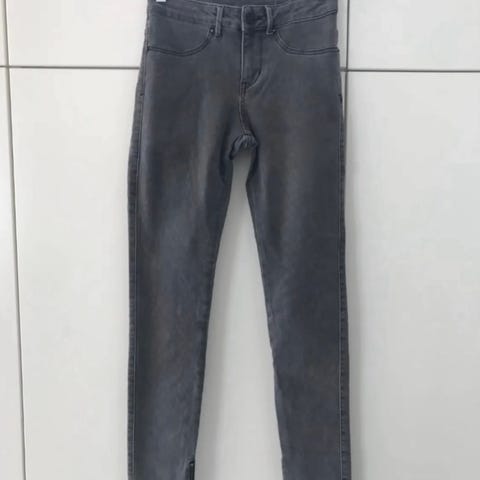 Bløde jeans med påsyede striber ned langs siderne. Smalle ben, snydelommer foran og to baglommer. Kun brugt enkelte gange.