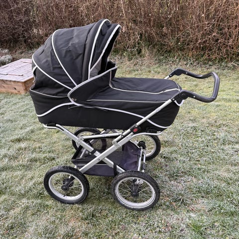 Der medfølger; luksus Odder lift med bærehåndtag i kalechen (nyere end selve barnevognen og kun brugt til 1 barn i få måneder), regnslag, myggenet, sele, rygstøtte samt luksus madrasser og lagner til både lift og barnevognsmadrassen.