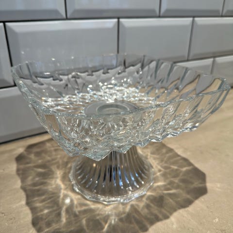Smukt fad i brunt glas. Fremstår med alm. brugsspor. Ø 30 cm, højde 4,5 cm.