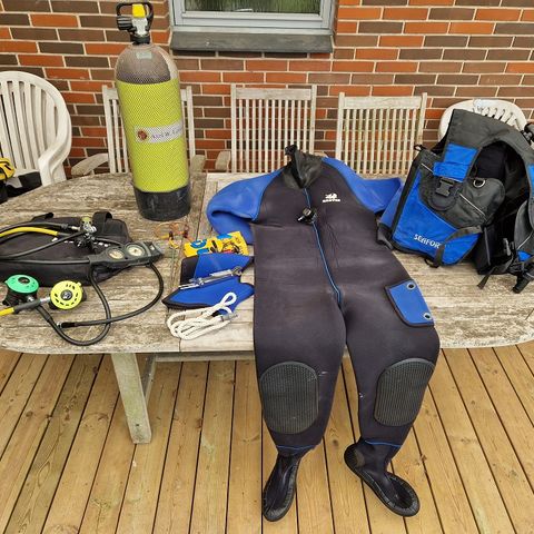 Dykkerudstyr sæt i hård transportkuffert. Sættet indeholder blandt andet dykkerure/dykkermetre, manometer, værktøj og diverse tilbehør samlet i en robust kasse. Egnet til opbevaring og transport af dykkerudstyr.