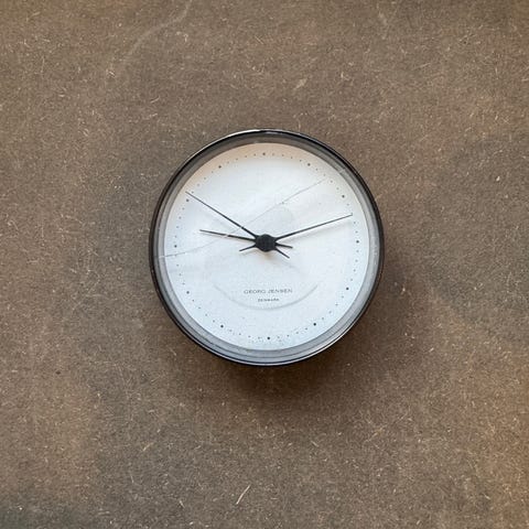 Arne Jacobsen vægur med rund hvid urskive og sorte romertal. Uret har sorte visere og klassisk grafisk typografi. Bagsiden er udstyret med ophæng til vægmontering og batterirum. Velegnet som vægur i stue, køkken eller kontor. Bemærk der er påsat logo på bagsiden. Uret er givet i gave. Aldrig brugt, men dog pakket ud.