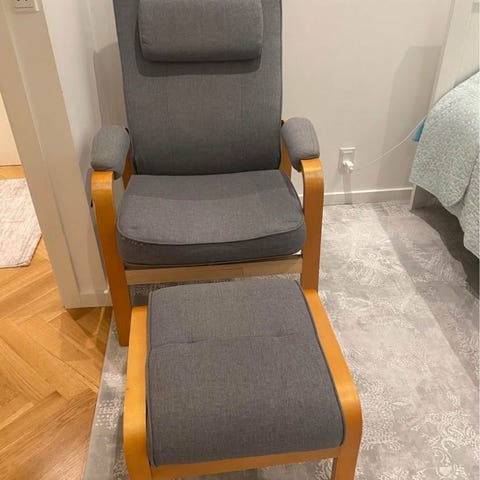 Næsten ny let lænestol i gråt stof