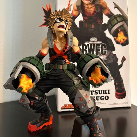 Banpresto My Hero Academia The Amazing Heroes vol. 3 Katsuki Bakugo figur. Samlefigur af karakteren Katsuki Bakugo fra anime-serien My Hero Academia. Figuren står i kampstilling på rund sort base. Leveres i original æske med serienavnet The Amazing Heroes vol. 3 angivet på emballagen. Velegnet som samlerobjekt eller dekoration for fans af My Hero Academia-universet eller anime fans.