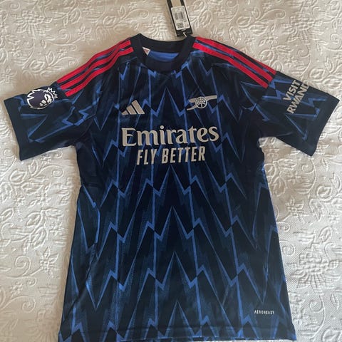 Adidas Arsenal fodboldtrøje til junior i str. 176. Trøjen er i grå/sorte nuancer med grafisk mønster og rund hals. Klublogo og sponsortryk på front samt Premier League-mærke på ærmet. Fremstillet i let, åndbart materiale egnet til fodbold og anden sport eller som fritidstrøje.