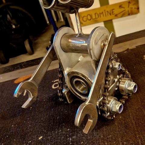 I mit kreative værksted KJC Custom Creations laver jeg figurer af fri fantasi af gammelt skrot. Metal. Jern. Værktøj olign.